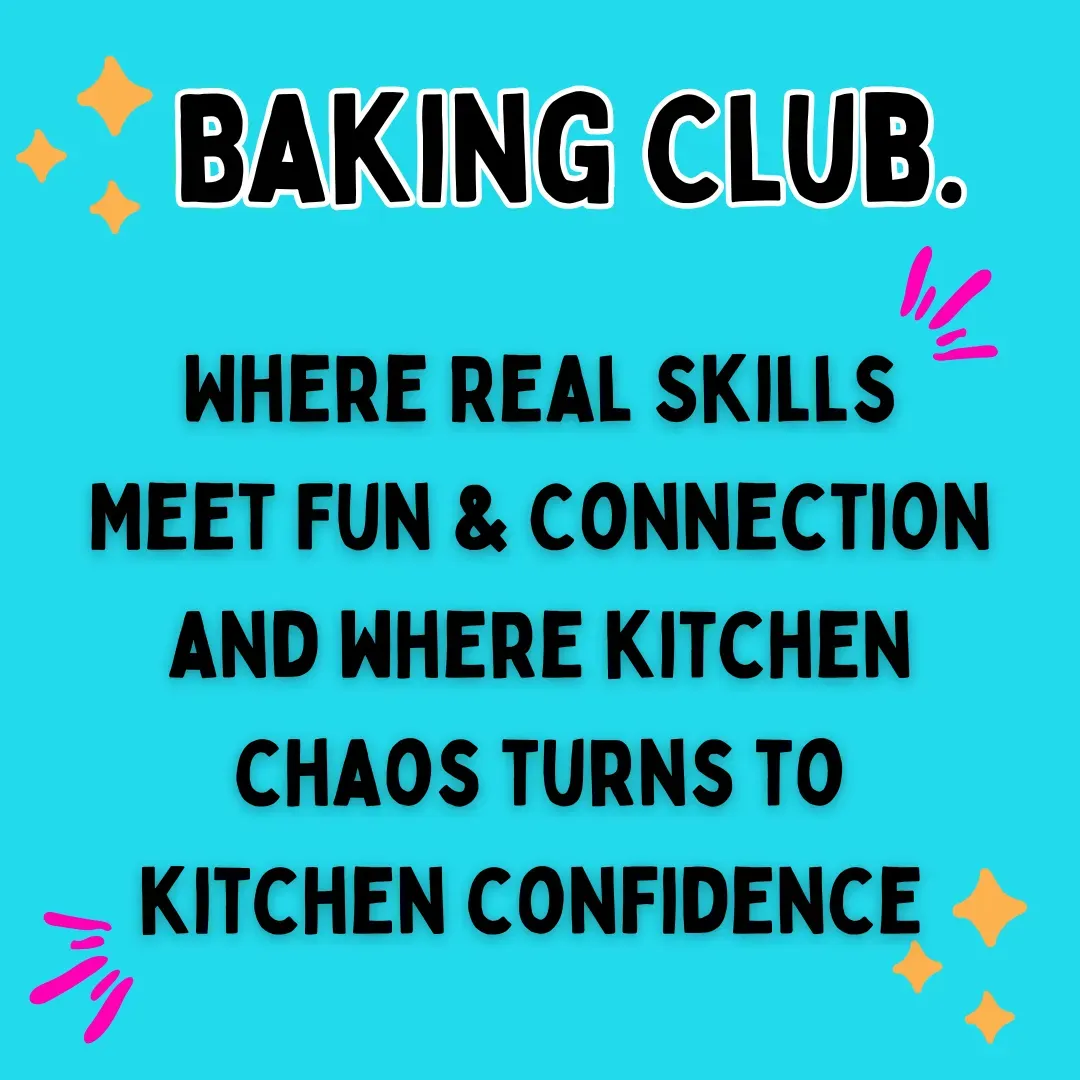 Baking Club is like Netflix for baking- but real-life. Join us live or open the library and choose and enjoy (all with flour, fun, confidence, giggles, and life skills thrown in).